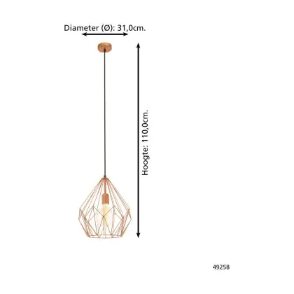 Beschrijving Eglo Hanglamp Carlton Staal Koper | IP20 - Geschikt voor 1x E27