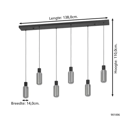 Eglo Hanglamp Maione Staal Zwart | IP20 - Geschikt voor 6x E27