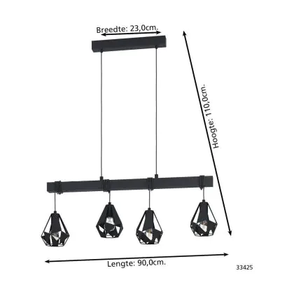 Beschrijving Eglo Hanglamp Townshend 7 Staal Hout Zwart | IP20 - Geschikt voor 4x E27