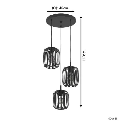 Beschrijving Eglo Pendelarmatuur Romazzina Staal Zwart | Geschikt voor 3x E27