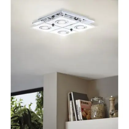 Beschrijving Eglo Plafondlamp Cabo Roestvrij Staal Chroom 4x2.8W 4x250lm - 830 Warm Wit | IP20 - Incl. 4x GU10