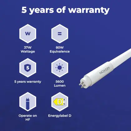 | Fabrikantnaam | Noxion Avant LEDtube T5 Extreme UO HF 1500mm 37W/840 (80W eqv.) | |