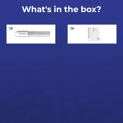 Deze Noxion LED TL buis heeft een Lumen / Watt efficiëntie van lm/W. Dit is de waarde die je verkrijgt door de lichtopbrengst (2800 Lumen) te delen door het wattage (20W) van deze lichtbron. Hoe weet je of jouw lichtbron een goede efficiëntie heeft? In dit geval ligt de lm/W waarde boven de 65. Je kunt er ook voor kiezen om een LED geïntegreerd TL armatuur te kopen. Hierbij heb je de keuze uit diverse (waterdichte) LED montagebalken, die in een divers aantal Lumen verkrijgbaar zijn. Een (dimbaar) LED paneel is ook een slimme optie, met name voor ruimtes met een systeemplafond (eenvoudige installatie) en kantoren (UGR<19 varianten).
