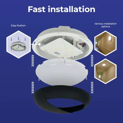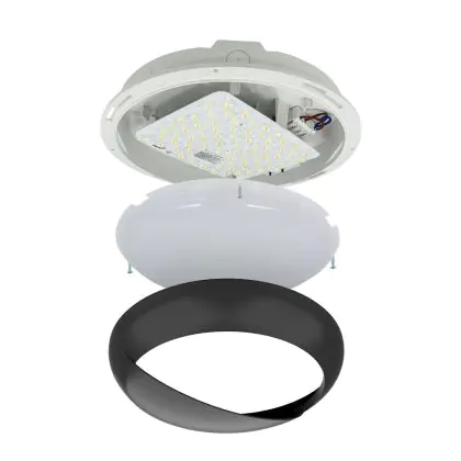 Beschrijving Noxion LED Bulkhead Pro V2 12/16/20W 2400lm - 830-840-865 CCT | 325mm - IP65 - 3 Uur Noodverlichting + Ooglid Ring Zwart