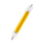 Deze R7s LED lamp is de efficiënte en energiezuinige LED-vervanger van R7s halogeenlampen. Wat opvalt aan deze buisvormige LED verlichting is de lampvoet aan beide uiteinden. Hiermee klik je de lamp vast in een geschikt armatuur. R7s LED staaflampen beschikken over een brede stralingshoek (gradenbundel), waardoor het licht meerdere kanten op schijnt. Dat is onder andere ideaal voor bouwplaatsen, sportvelden of (hoge) wand- en plafondarmaturen. R7s LED lampen met een extra warm witte kleurtemperatuur (2700K) kom je ook tegen in design armaturen voor woonkamers en slaapkamers. De kleurtemperatuur van deze LED lamp is: .